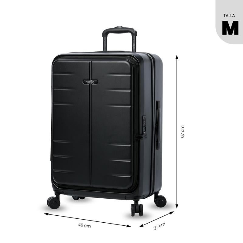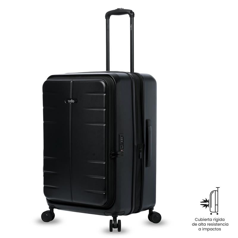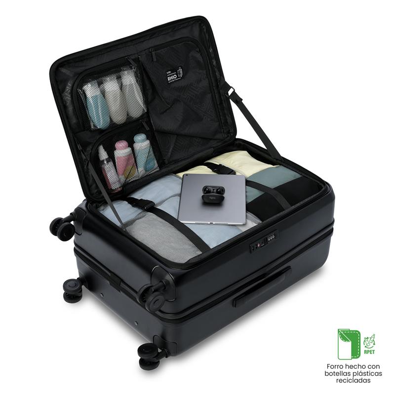 ¡Empaca sin estrés! La maleta de viaje mediana 360 Rhio combina diseño moderno con funcionalidad superior. Su material en policarbonato protege tus pertenencias y sus 8 ruedas 360° permiten desplazarte por cualquier aeropuerto sin esfuerzo. Su apertura tipo baúl te permite organizar todo de manera rápida y cómoda, mientras que el sistema TSA te ofrece seguridad total. Antes de volar, confirma medidas con tu aerolínea favorita. ¡Viaja con confianza!