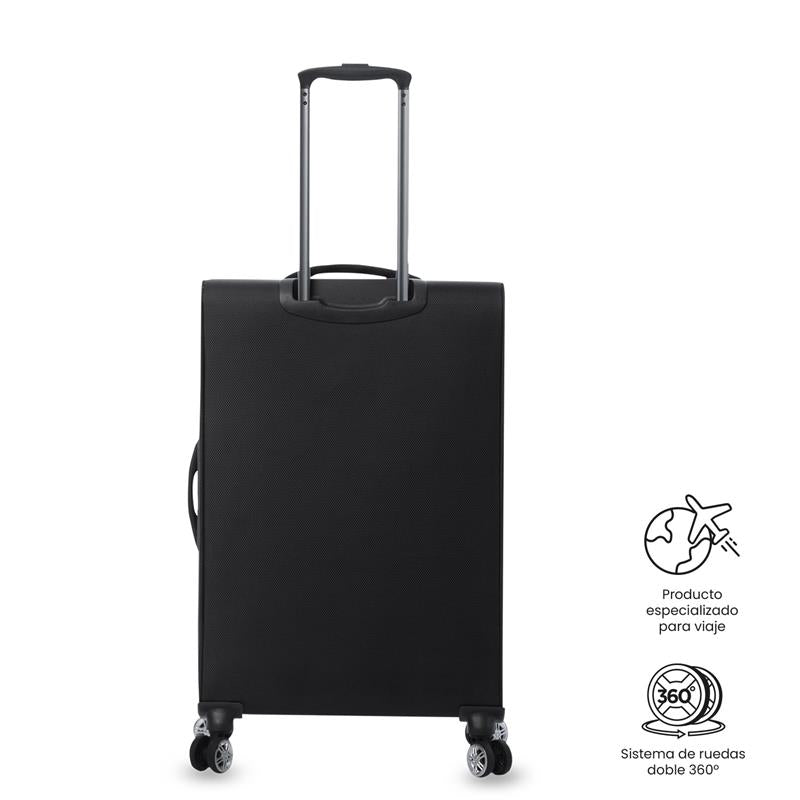 ¡Explora sin complicaciones con la maleta de viaje mediana 360 Liviana! Fabricada en poliéster de alta calidad, es ideal para registrar y llevar en bodega. Cuenta con múltiples bolsillos de acceso rápido, expansión y sistema de doble rueda 360 para mayor movilidad. Su manija telescópica ajustable y el candado TSA brindan seguridad adicional. Internamente, cuenta con división en cremallera y forro en material RPET para organizar tus pertenencias.