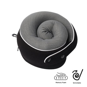 La almohada de cuello para viaje Memory Foam Plane es la elección perfecta para viajeros Su diseño ergonómico, con ondas que se ajustan a la columna y el cuello, brinda un descanso placentero en cualquier trayecto. Esta almohada se enrolla fácilmente y se asegura con broches, además de contar con un gancho para sujetarla a tu maleta o bolso. Su forro removible con cremallera facilita la limpieza. ¡Disfruta de un viaje cómodo!