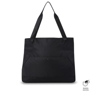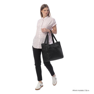 El bolso Roxanne L es una opción versátil y funcional para quienes buscan practicidad en su día a día. Confeccionado en poliéster con detalles en poliuretano y forro interior en poliéster reciclado (RPET), combina resistencia, ligereza y compromiso con la sostenibilidad. Dispone de un bolsillo porta PC de hasta 14", perfecto para llevar tu portátil protegido, además de un organizador con portallaves y un bolsillo interno con cremallera que aportan orden adicional. Incluye también un bolsillo posterior plano para guardar documentos o accesorios de fácil acceso. El pasador para sistema de ruedas lo convierte en un aliado ideal para viajes, ya que permite acoplarlo cómodamente a maletas de cabina. Como detalle extra, incorpora un llavero especial que añade un toque distintivo. Con unas medidas de 40 x 34,5 x 13 cm y una capacidad de 17,94 litros, el bolso Roxanne L ofrece un equilibrio entre espacio y manejabilidad, adaptándose tanto a la rutina laboral como a desplazamientos más largos.
