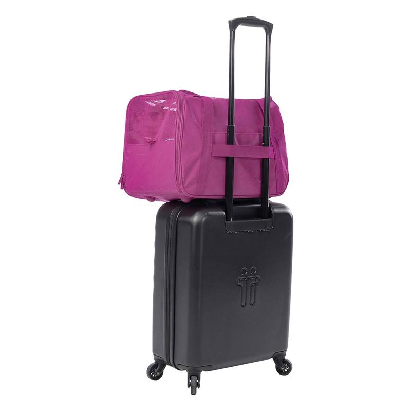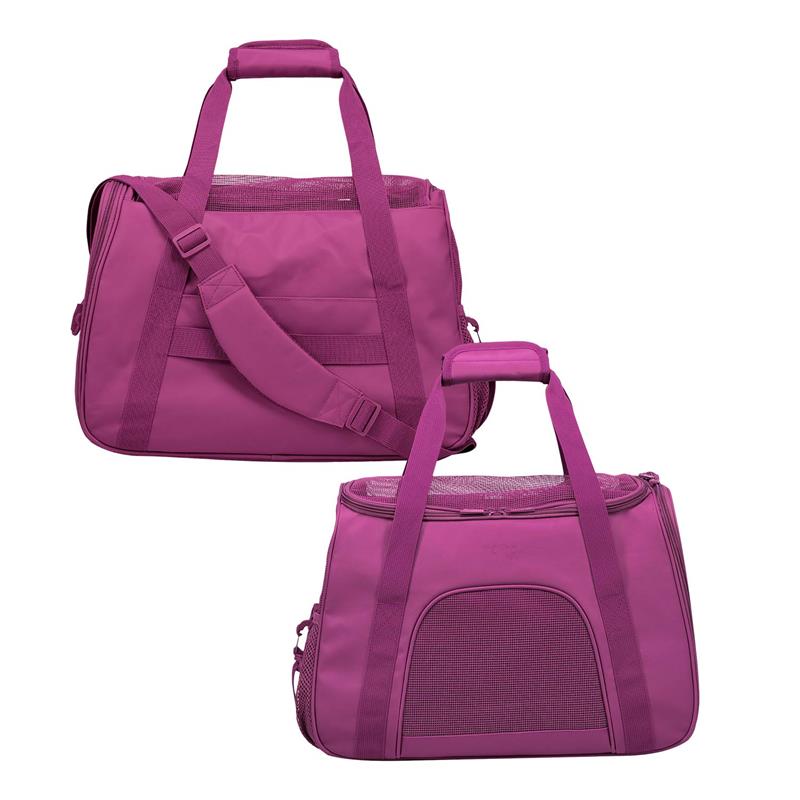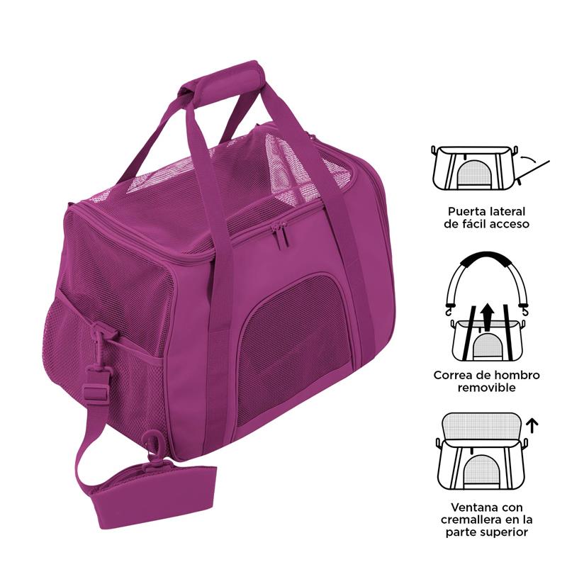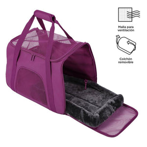 El bolso cargador de mascota Marley 2.0 en morado redefine la comodidad y seguridad en los viajes con tu pequeño peludo. Diseñada para perros o gatos de raza pequeña, se asegura al cinturón del carro o a la maleta de viaje, proporcionando un transporte seguro. Elaborada en resistente poliéster, con correa cómoda para llevar en la mano o hombro. Cuenta con puerta de fácil acceso, ventilación óptima y ventana superior con cremallera. Su colchón removible facilita la limpieza, y para la seguridad de tu mascota, incluye correa y mosquetón interno para sujetar el arnés o collar. Con medidas de 43 x 30 x 25 cm, esta tula cargadora asegura comodidad y tranquilidad en cada viaje. No es recomendable obstruir los accesos de ventilación ya que evita la correcta circulación del aíre hacia adentro de la tula.