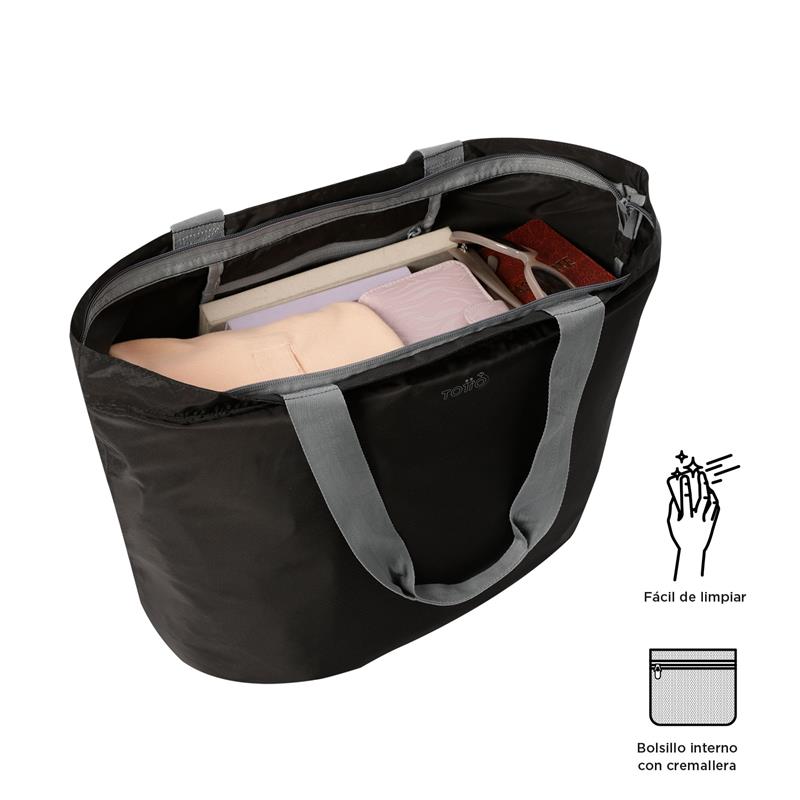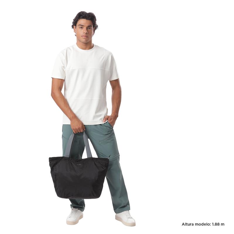 El bolso plegable Ramel 20 es el complemento perfecto para tus viajes. Este modelo grande tipo shopping tiene un compartimiento principal con cierre en cremallera y un bolsillo interno donde se pliega fácilmente para ahorrar espacio. Está elaborado en un material liviano, resistente y fácil de limpiar, ideal para llevar a cualquier destino. Su diseño práctico y funcional lo convierte en una opción imprescindible. ¡Viaja con comodidad!