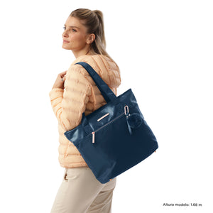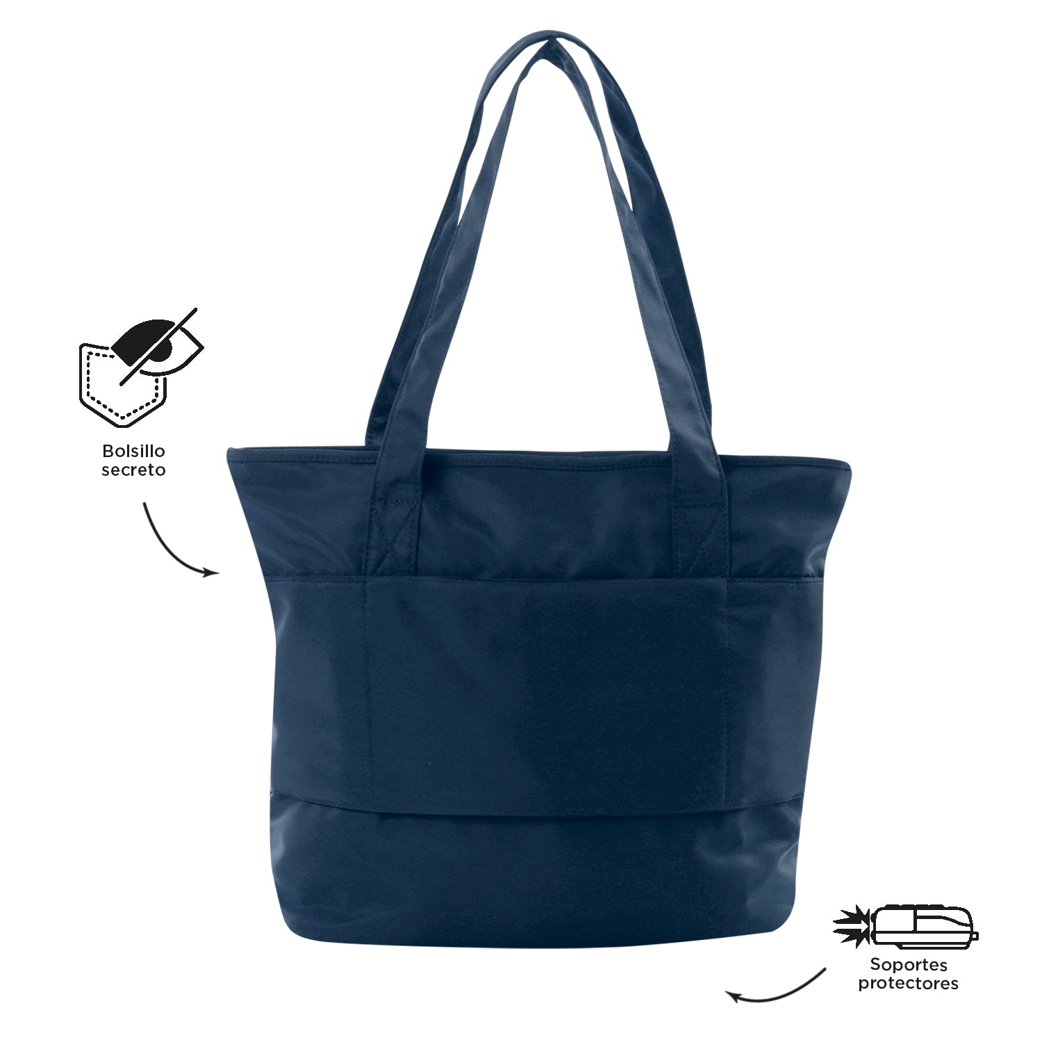 ¡Luce increíble con el Tote bag Adelaide 2 2.0! Este bolso grande en poliéster twill, es suave al tacto, cuenta con detalles metálicos, un práctico llavero en forma de pompón, un bolsillo para botella y un compartimento secreto. Además, incluye un pasador para sistema de ruedas y un organizador interno sencillo. Lleva tu portátil de 13" con comodidad. ¡Adquiere el tuyo hoy y destaca!