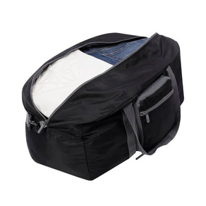 Nueva Bolso plegable, un infaltable como equipaje auxiliar. Su forma es mucho más práctica a la hora de usar porque se adapta muy bien sin importar si está llena o no. Tiene manijas para llevar en la mano, correas ajustables y removibles para llevar en el hombro y un bolsillo frontal con cremallera que también es donde queda plegada. Elaborada en un material liviano, resistente y fácil de limpiar. Los colores son los adaptados a la paleta de Travel.
