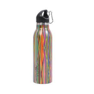 Botellón metálico en acero inoxidable, de doble pared; conserva la temperatura de las bebidas frío o calor hasta por doce horas, dependiendo de la condición climática en la que se encuentre. El diseño de la tapa plástica permite llevarlo con facilidad, además tiene un mosquetón para anclarlo a la maleta o bolso.