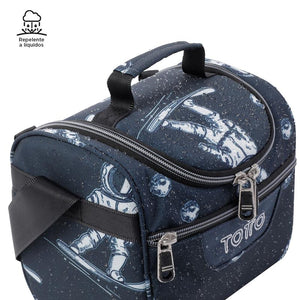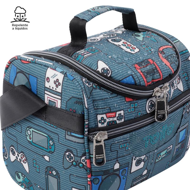 Esta colección esta diseñada especialmente para jóvenes de colegio que buscan funcionalidad, además esta elaborada en un material de alta durabilidad y resistencia. El diseño de esta colección representa los atributos de la marca que son dinámico, alegre, colorido y cómodo. La lonchera en la parte interna esta desarrollada con un material llamado policloruro de vinilo, (recubrimiento en pvc), este material no es térmico, es decir, no mantiene los alimentos fríos y/o calientes, sin embargo es de fácil limpieza en caso de que haya alguna filtración.