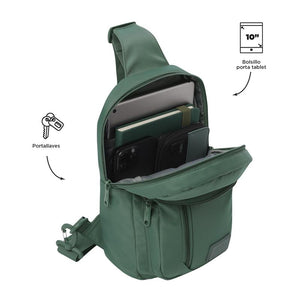 No es un bolso, ni una bandolera: ¡es todo a la vez! Podrás utilizar la bandolera cruzada Tracer en la posición que quieras gracias a sus correas ajustables y adaptables para llevarla a ambos lados del cuerpo. Incorpora un compartimento para tablet, llavero extraíble y sus tejidos emplean materiales procedentes de botellas plásticas recicladas. ¡Un diseño a tope de estilo y además sostenible! Capacidad 2.76 litros.