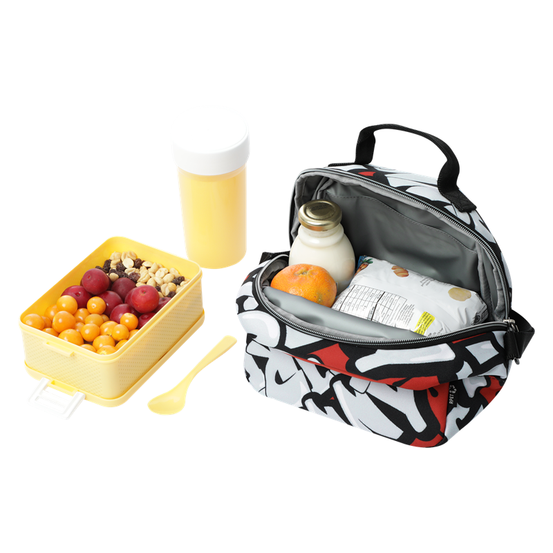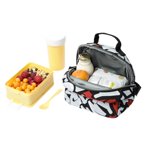 Lleva tus alimentos con la lonchera borrador con aislamiento térmico y repelente a líquidos, hecha con materiales reciclados.