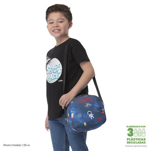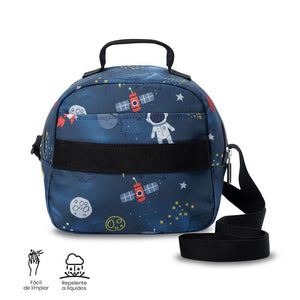 ¡Organiza tu día con la lonchera Borrador! Diseñada con aislamiento térmico para mantener tus alimentos frescos hasta por 5 horas, es repelente a líquidos y fácil de limpiar. Incluye un elástico interno para llevar botellas de forma segura. Además, cuenta con pasador para sistema de ruedas. Elaborada con poliéster y forro de etil vinil acetato, utiliza materiales reciclados, contribuyendo al cuidado del medio ambiente.
