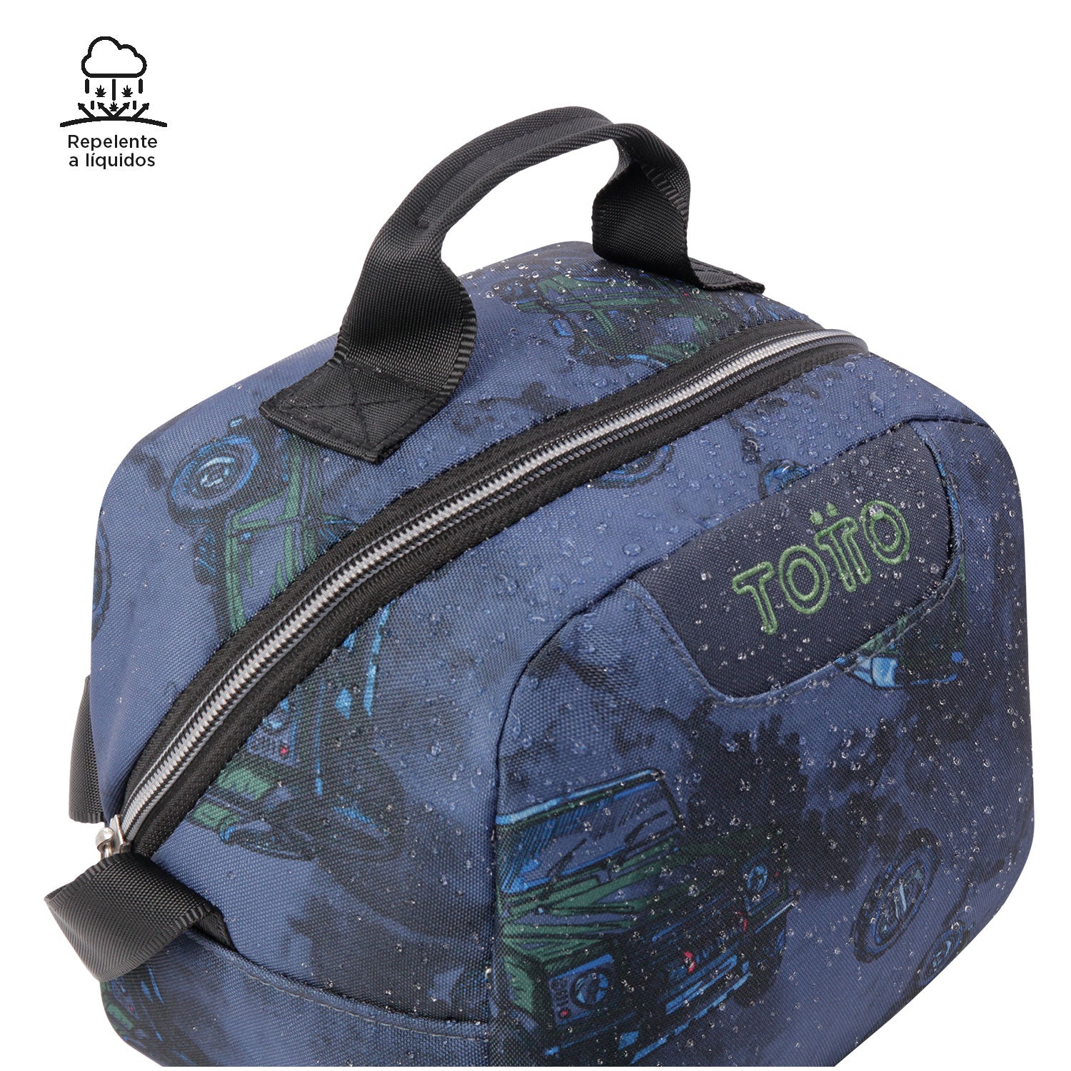 ¡Organiza tu día con la lonchera Borrador! Diseñada con aislamiento térmico para mantener tus alimentos frescos hasta por 5 horas, es repelente a líquidos y fácil de limpiar. Incluye un elástico interno para llevar botellas de forma segura. Además, cuenta con pasador para sistema de ruedas. Elaborada con poliéster y forro de etil vinil acetato, utiliza materiales reciclados, contribuyendo al cuidado del medio ambiente.