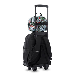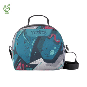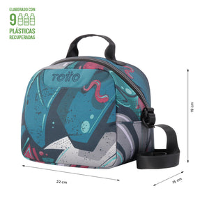 ¡Organiza tu día con la lonchera Borrador! Diseñada con aislamiento térmico para mantener tus alimentos frescos hasta por 5 horas, es repelente a líquidos y fácil de limpiar. Incluye un elástico interno para llevar botellas de forma segura. Además, cuenta con pasador para sistema de ruedas. Elaborada con poliéster y forro de etil vinil acetato, utiliza materiales reciclados, contribuyendo al cuidado del medio ambiente.