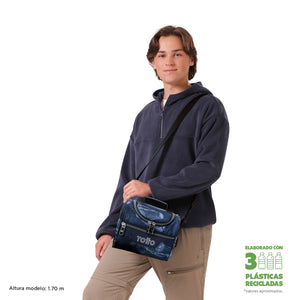 ¡Mejora tu rutina diaria con la lonchera Pizarra! Está diseñada con aislamiento térmico para mantener la temperatura hasta por 5 horas, incluye un bolsillo interno en malla y un bolsillo auxiliar, perfectos para organizar tus pertenencias. Su exterior es repelente a líquidos y fácil de limpiar, ideal para el uso diario. Confeccionada con materiales reciclados y equipada con correas ajustables y pasador para sistema de ruedas.