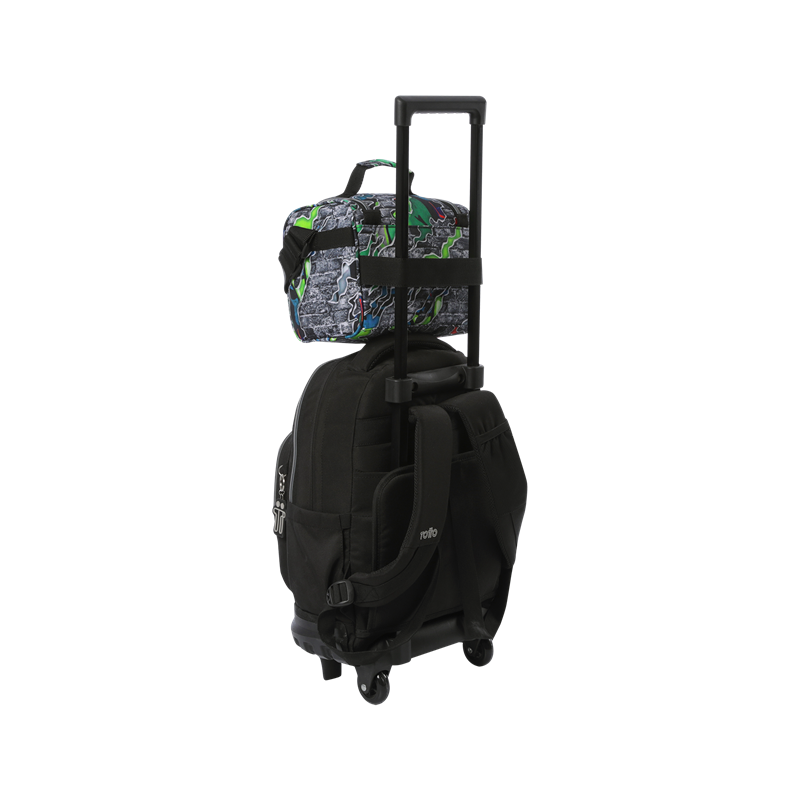 ¡Mejora tu rutina diaria con la lonchera Pizarra! Está diseñada con aislamiento térmico para mantener la temperatura hasta por 5 horas, incluye un bolsillo interno en malla y un bolsillo auxiliar, perfectos para organizar tus pertenencias. Su exterior es repelente a líquidos y fácil de limpiar, ideal para el uso diario. Confeccionada con materiales reciclados y equipada con correas ajustables y pasador para sistema de ruedas.