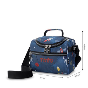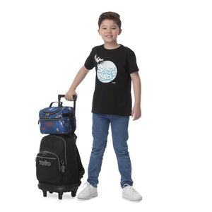 ¿Qué características puedes encontrar en esta lonchera? Su pasador para sistema de ruedas te permite llevarla cómodamente junto a tu mochila. También, cuenta con correa ajustable con la que la puedes llevar en la mano o cruzada en el hombro.