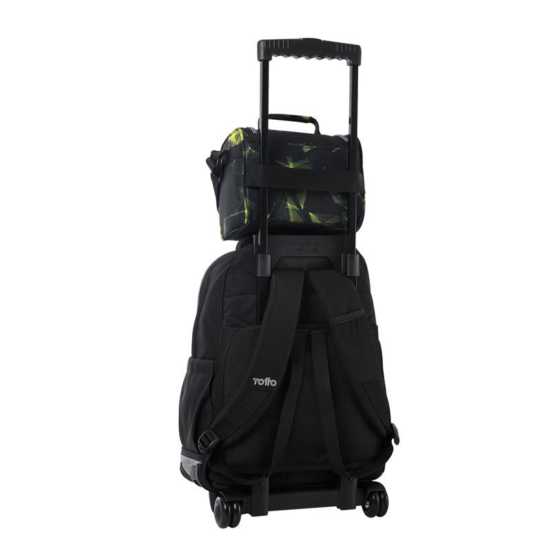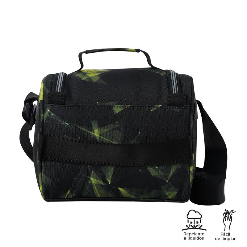 ¿Qué características puedes encontrar en esta lonchera? Su pasador para sistema de ruedas te permite llevarla cómodamente junto a tu mochila. También, cuenta con correa ajustable con la que la puedes llevar en la mano o cruzada en el hombro.