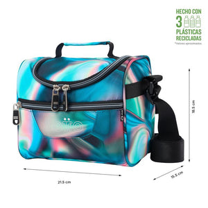 ¡Mejora tu rutina diaria con la lonchera Pizarra! Está diseñada con aislamiento térmico para mantener la temperatura hasta por 5 horas, incluye un bolsillo interno en malla y un bolsillo auxiliar, perfectos para organizar tus pertenencias. Su exterior es repelente a líquidos y fácil de limpiar, ideal para el uso diario. Confeccionada con materiales reciclados y equipada con correas ajustables y pasador para sistema de ruedas.