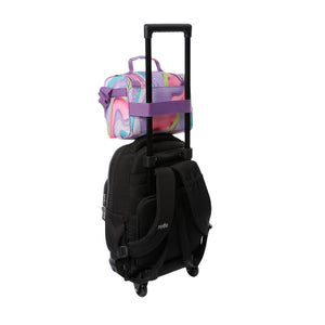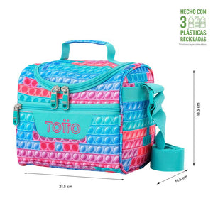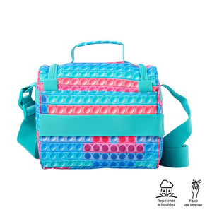 ¡Mejora tu rutina diaria con la lonchera Pizarra! Está diseñada con aislamiento térmico para mantener la temperatura hasta por 5 horas, incluye un bolsillo interno en malla y un bolsillo auxiliar, perfectos para organizar tus pertenencias. Su exterior es repelente a líquidos y fácil de limpiar, ideal para el uso diario. Confeccionada con materiales reciclados y equipada con correas ajustables y pasador para sistema de ruedas.