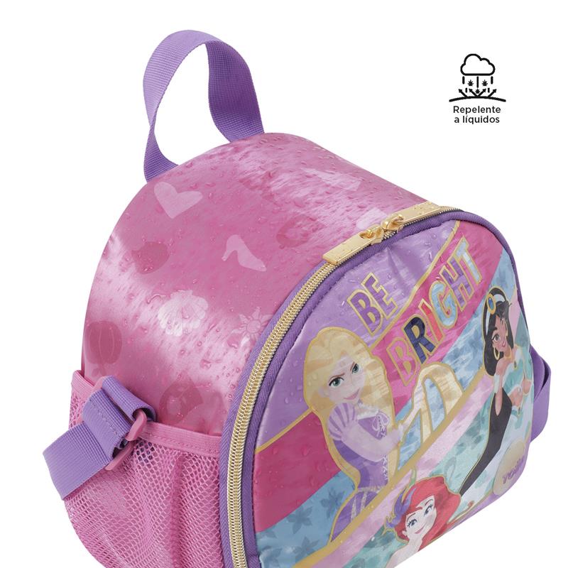 ¡Lleva la magia de las princesas de Disney siempre contigo! La lonchera Princesas es ideal para llevar tus snacks y bebidas preferidas. Cuenta con un compartimento principal con cierre de doble cremallera, bolsillos laterales portabotellas con elásticos para asegurarlas, reata con herraje de ajuste para colgar en el hombro o cruzada, una banda en la parte posterior que te permite anclarla al morral de ruedas y estampado para marcar en la parte posterior. Su diseño estampado y lleno de color te encantará ¡Lleva la tuya ahora!