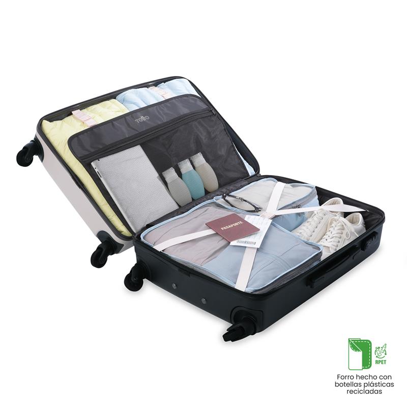 Diseñada en un resistente material rígido (ABS & Policarbonato), este equipaje ofrece una textura única y durabilidad excepcional. Con un sistema de ruedas 360 y un sistema de TSA, tendrás seguridad y facilidad de movimiento en cualquier aeropuerto. El separador interno con organizador te permite empacar todo lo necesario. ¡Elige la maleta Bazy para un viaje sin preocupaciones!