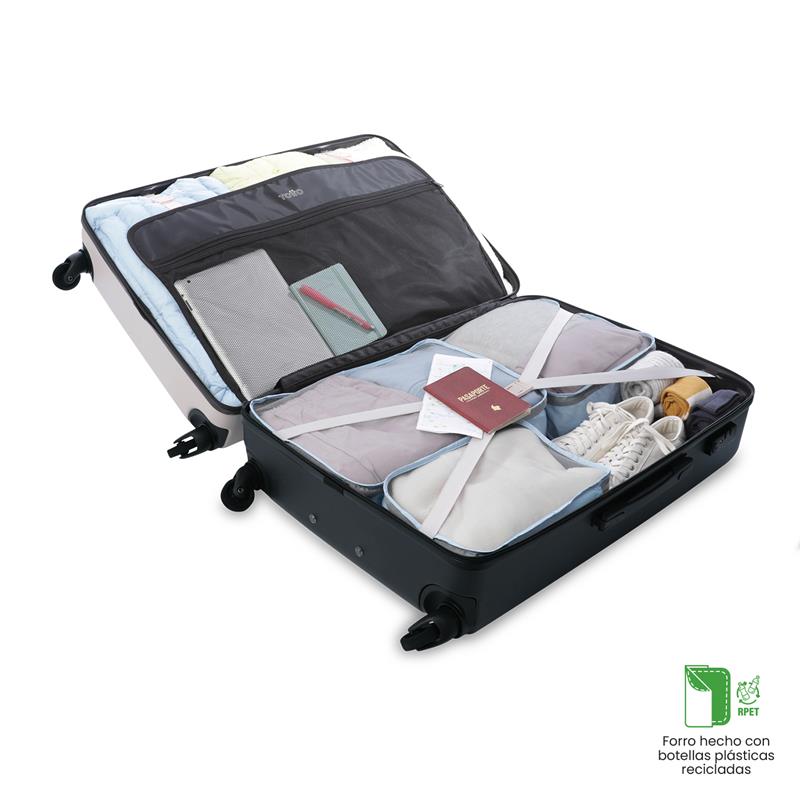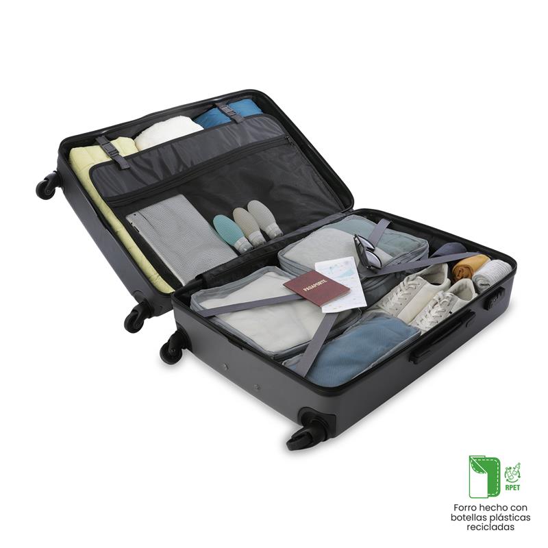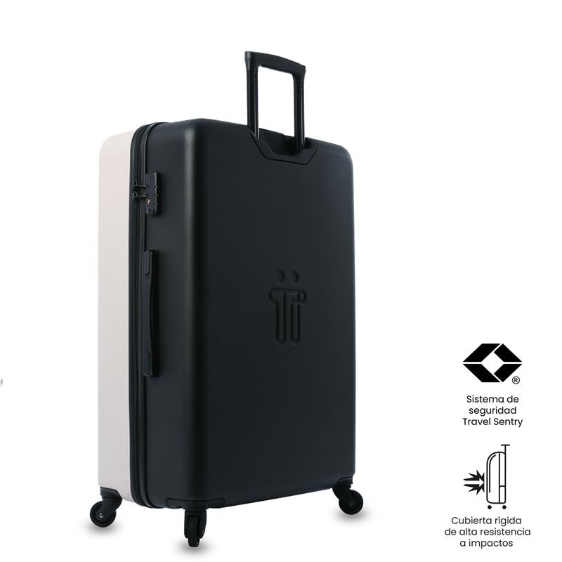 Para tus viajes más largos, la maleta de viaje 30 kilos 360 Bazy L es la compañera ideal. Su diseño en material rígido (ABS & Policarbonato) ofrece una resistencia excepcional y un acabado con textura única. Las ruedas 360 facilitan el manejo en cualquier dirección, mientras que el sistema TSA proporciona seguridad en aeropuertos. Con un separador interno y organizador, podrás empacar todo lo necesario. ¡