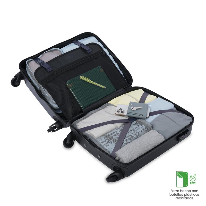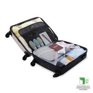 Maleta bazy pequeña te frece seguridad con su sistema TSA aceptado en todas las entidades aeroportuarias. Con rotación 360 y un separador con organizador interno, empaca todo de manera eficiente. Fabricada en material rígido (ABS + policarbonato) con una textura única. Verifica el peso y medidas con tu aerolínea antes de viajar. ¡Adquiere la tuya y disfruta de tus viajes al máximo!