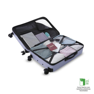 La maleta mediana Helios M 2.0 está diseñada para ofrecer máxima protección y comodidad en tus desplazamientos. Fabricada en una combinación de policarbonato y ABS, su carcasa rígida garantiza una alta resistencia frente a impactos, manteniendo tus pertenencias seguras en todo momento. Su sistema de ruedas dobles de 360 asegura una movilidad ágil y fluida en cualquier dirección, mientras que la manija telescópica ajustable proporciona un manejo cómodo. En el interior, incorpora correas de compresión que ayudan a organizar y mantener el contenido en su sitio durante el viaje. Además, cuenta con el sistema de seguridad Travel Sentry (TSA), que permite un cierre homologado para controles de aduanas sin riesgo de dañar la maleta. El forro interno está confeccionado en poliéster 100% con acabado RPET, elaborado a partir de botellas plásticas recicladas, aportando una opción sostenible a tus viajes. Con unas medidas de 42.3 x 60.2 x 24 cm y una capacidad de 74 L, es una opción práctica y compacta para viajes de varios días, donde se busca combinar resistencia, ligereza y diseño contemporáneo.