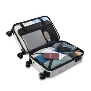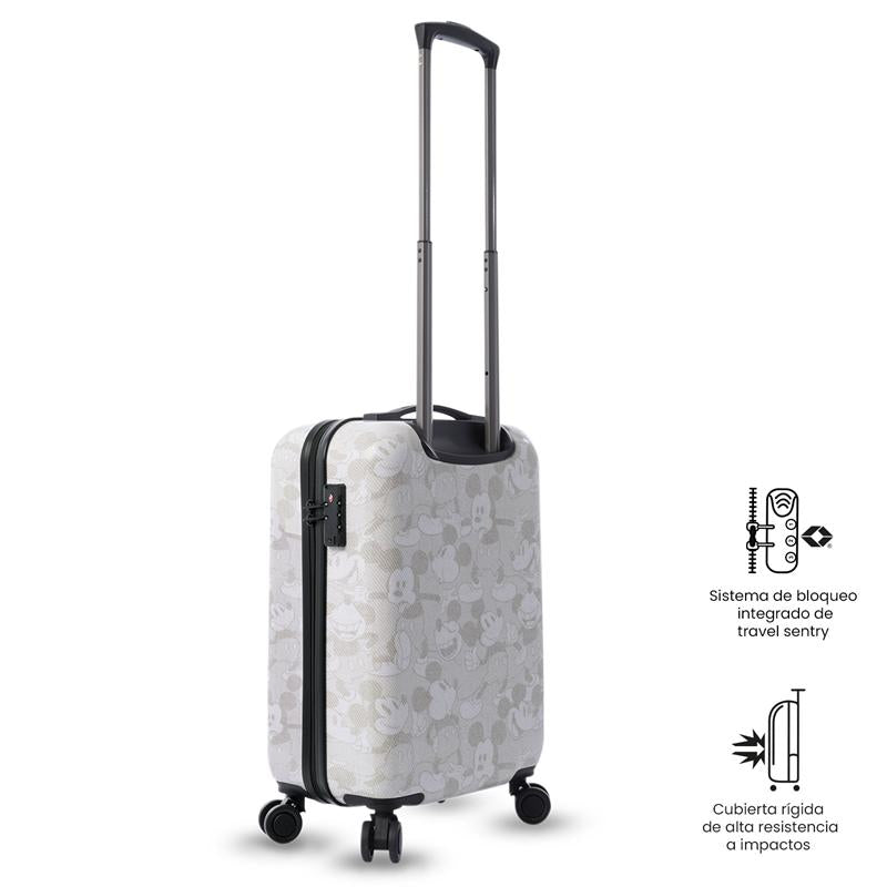 ¡Prepárate para viajar con Mickey White! Esta maleta de 10 kilos pequeña cuenta con cuatro ruedas con sistema 360 que facilitan el desplazamiento por cualquier aeropuerto del mundo, mientras la manija telescópica ajustable y el cierre TSA protegen tus pertenencias. Ligera y compacta, perfecta para llevarla en la cabina del avión. Valida las medidas permitidas por tu aerolínea favorita antes de volar. ¡Haz tus viajes más prácticos y cómodos!