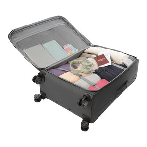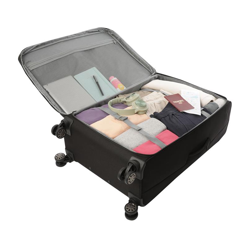 La maleta 360 Canvas es perfecta para llevar todo lo que necesitas en tus viajes largos. Este modelo grande está diseñado con múltiples compartimentos que facilitan la organización y optimizan el espacio. Fabricada en material suave y resistente, incluye un sistema de ruedas 360° para fácil desplazamiento y correas de compresión internas. ¡Viaja con confianza!