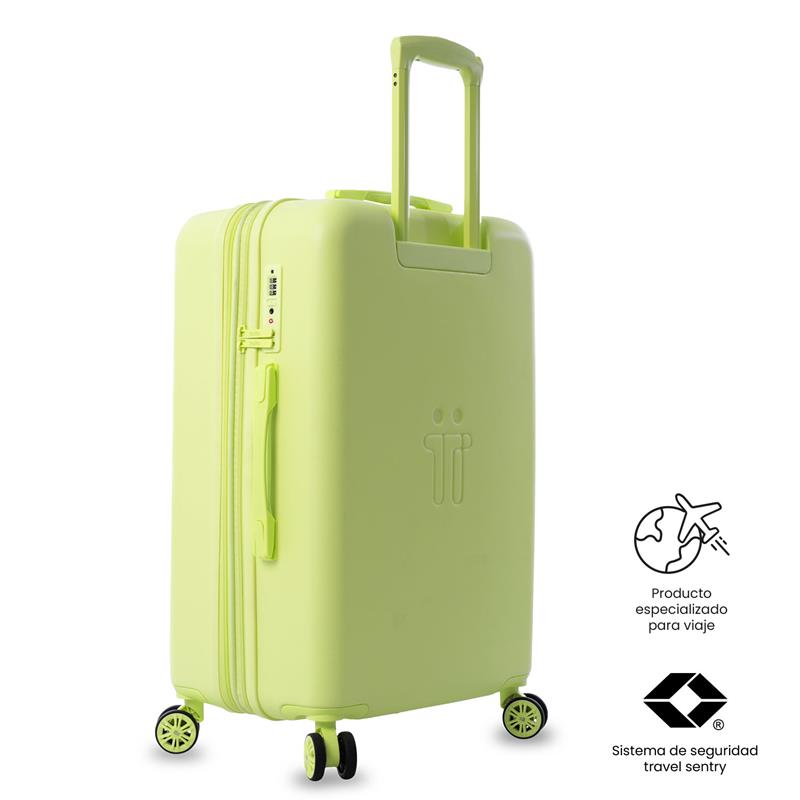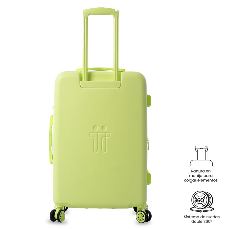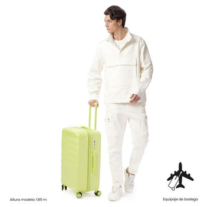 ¡Viaja mejor! La maleta de viaje 360 Bazy+ 2.0 mediana está pensada para bodega, con ruedas 360° de última tecnología (8 ruedas) que facilitan el desplazamiento. Su estructura rígida con textura única, sistema expandible, organizador interno, separador y forro en material RPET permiten empacar con orden. Incluye candado TSA. Si vas a registrarla, valida sus medidas con tu aerolínea. ¡Hazla parte del trayecto!