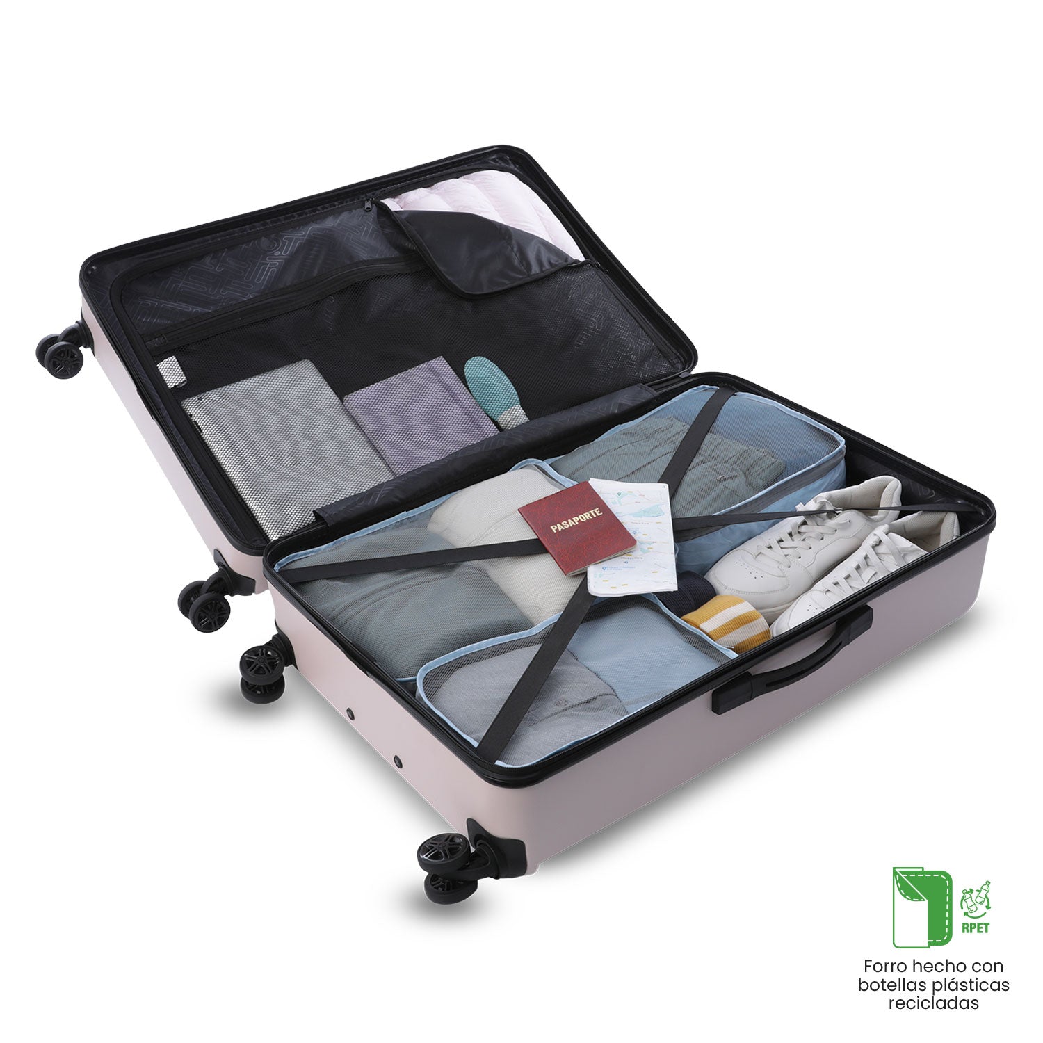 La maleta grande SKO es la opción ideal para quienes buscan resistencia y comodidad en sus viajes. Con su sistema de rotación de 4 ruedas 360°, esta maleta ofrece un desplazamiento suave y sin esfuerzo. Su estructura en un material mix de policarbonato y ABS la hace altamente resistente a impactos, protegiendo tus pertenencias. Además, cuenta con un candado de 3 dígitos para mayor seguridad, un asa telescópica ajustable y un interior optimizado con tapa en malla y correas de ajuste para mantener tus cosas organizadas. Ya sea para un viaje largo o corto, la maleta SKO es perfecta para viajar con total tranquilidad. ¡Haz que cada aventura sea más fácil y segura con la colección SKO!