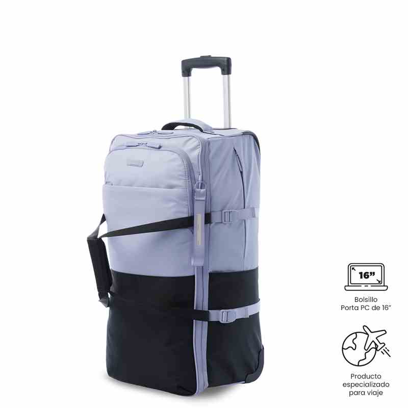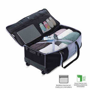La maleta de viaje Trip mediana es la opción práctica para desplazamientos terrestres y vuelos. Con capacidad de 23 kg, cuenta con manija reforzada para uso de mano y ruedas para mayor versatilidad. Incluye correas de ajuste, expansión para aumentar su capacidad, correas de compresión y forro en material RPET. Además, tiene bolsillo lateral elástico para botellas, bolsillos multifuncionales, organizador sencillo y llavero para marcación.