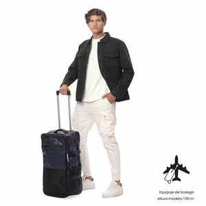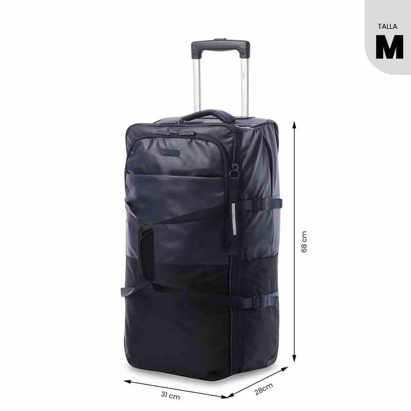 La maleta de viaje Trip mediana es la opción práctica para desplazamientos terrestres y vuelos. Con capacidad de 23 kg, cuenta con manija reforzada para uso de mano y ruedas para mayor versatilidad. Incluye correas de ajuste, expansión para aumentar su capacidad, correas de compresión y forro en material RPET. Además, tiene bolsillo lateral elástico para botellas, bolsillos multifuncionales, organizador sencillo y llavero para marcación.