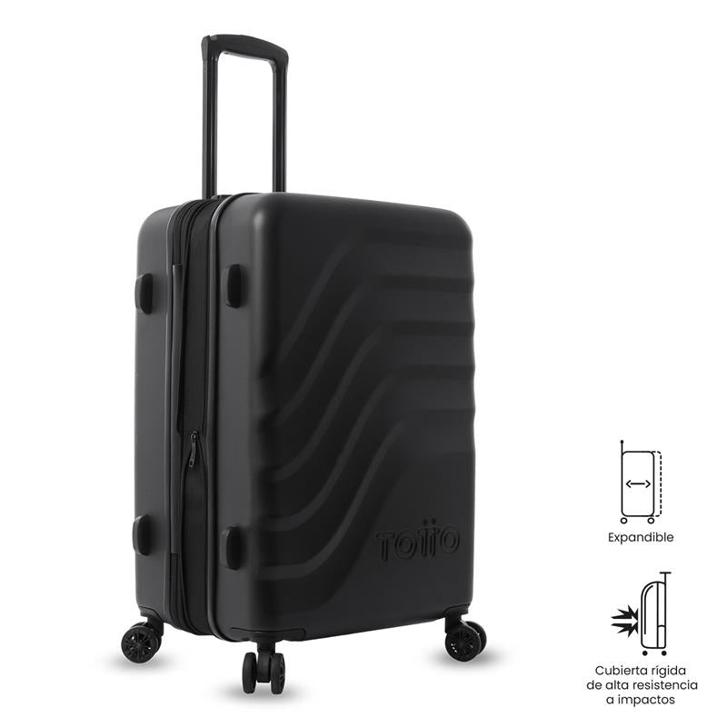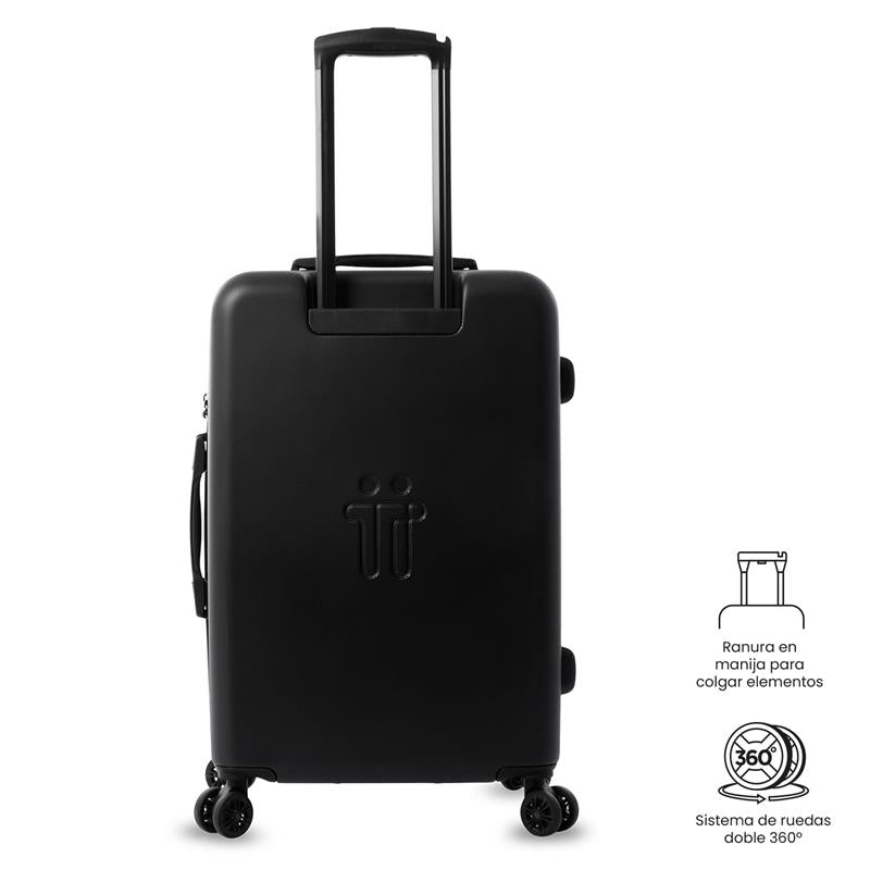 ¡Viaja mejor! La maleta de viaje Bazy+ 2.0 mediana está pensada para bodega, con ruedas 360 de última tecnología (8 ruedas) que facilitan el desplazamiento. Su estructura rígida con textura única, sistema expandible, organizador interno, separador y forro en material RPET permiten empacar con orden. Incluye candado de seguridad TSA. Si vas a registrarla, valida sus medidas con tu aerolínea. ¡Hazla parte del trayecto!