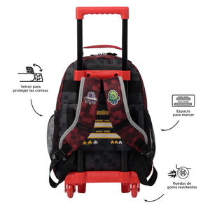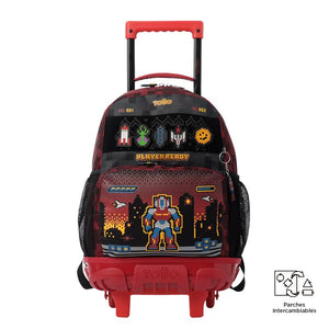 ¡Prepárate para un nivel épico con la colección Digibot! Inspirada en los videojuegos clásicos de naves estilo 8 bits, esta línea llena de energía y nostalgia es ideal para niños. Con colores vibrantes como rojo, amarillo, azul y negro. Esta mochila de ruedas mediana, confeccionada en poliéster, cuenta con un compartimiento principal con cierre en doble cremallera, ofreciendo un fácil acceso y seguridad. Sus correas acolchadas ajustables para los hombros y el asa superior en reata aseguran comodidad en el transporte. Además, tiene bolsillos laterales porta botellas y un bolsillo frontal con cierre en cremallera que incluye organizador para mantener todo en orden. Para añadir un toque único, incluye un llavero microinyectado. ¡Sube de nivel con Digibot!
