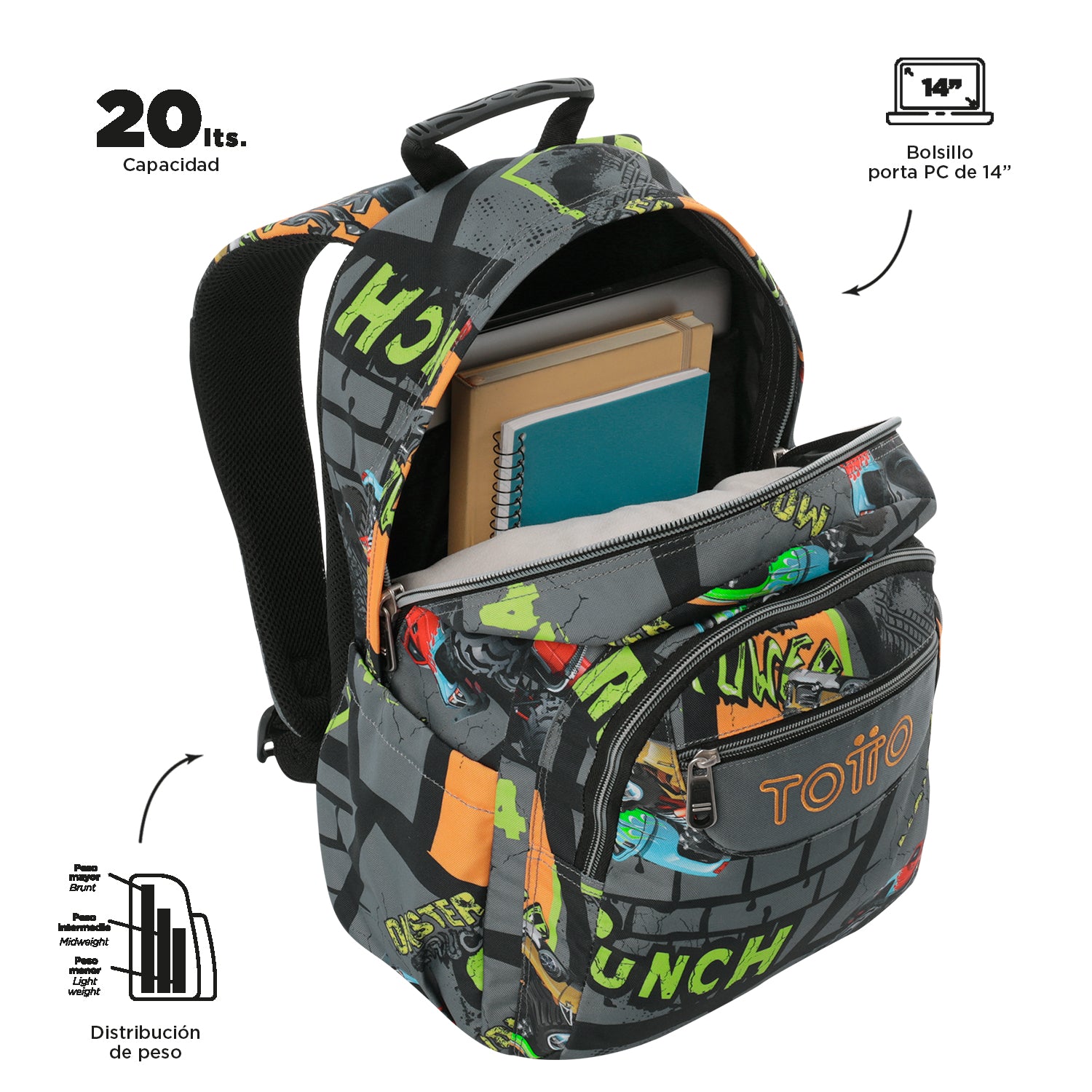 ¡Consigue tu Mochila para el colegio ahora! Esta mochila es ideal para llevar tu portátil de 14" con total seguridad. Fabricada con lona RPET, producto de 10 botellas recicladas, tiene una capacidad de 20 litros y ofrece bolsillos frontales de acceso rápido, organizador con portallave, compartimento para botella y correas ergonómicas con Air Mesh que aseguran mayor comodidad. ¡Perfecta para tu día a día!