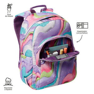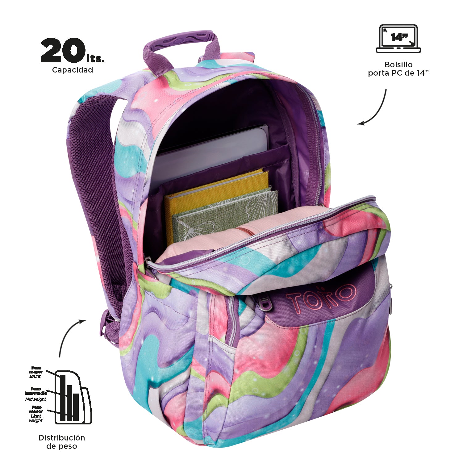 ¡Consigue tu maleta para el colegio ahora! Este morral es ideal para llevar tu portátil de 14" con total seguridad. Fabricado con lona RPET, producto de 10 botellas recicladas, tiene una capacidad de 20 litros y ofrece bolsillos frontales de acceso rápido, organizador con portallave, compartimento para botella y correas ergonómicas con Air Mesh que aseguran mayor comodidad. ¡Perfecto para tu día a día!