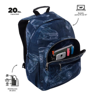 ¡Consigue tu Mochila para el colegio ahora! Esta mochila es ideal para llevar tu portátil de 14" con total seguridad. Fabricada con lona RPET, producto de 10 botellas recicladas, tiene una capacidad de 20 litros y ofrece bolsillos frontales de acceso rápido, organizador con portallave, compartimento para botella y correas ergonómicas con Air Mesh que aseguran mayor comodidad. ¡Perfecta para tu día a día!