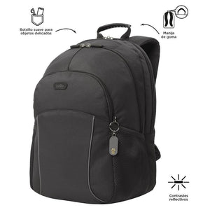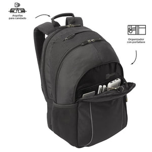 La mochila Cambri 2.0 es una opción robusta, versátil y segura para quienes buscan organización y protección en sus desplazamientos. Dispone de un bolsillo porta PC de 15,4”, un compartimento para tableta de 10” y un bolsillo suave para objetos delicados, ideales para llevar tus dispositivos electrónicos siempre protegidos. Su diseño incluye bolsillo secreto, argollas para candado en cremallera y organizador con portallaves, garantizando orden y seguridad. También cuenta con bolsillos laterales para botellas, espaldar ergonómico, correas en forma de S para mayor confort y asa de goma, que hacen más cómodo el transporte diario. Además, es repelente a líquidos, de fácil limpieza e incorpora detalles reflectivos para mayor seguridad en condiciones de poca luz. Fabricada en poliéster reciclado (RPET), demuestra un compromiso con la sostenibilidad. Sus medidas son 30,5 x 47 x 22,5 cm y ofrece una amplia capacidad de 32,25 litros. Incluye un llavero con logo como detalle distintivo.