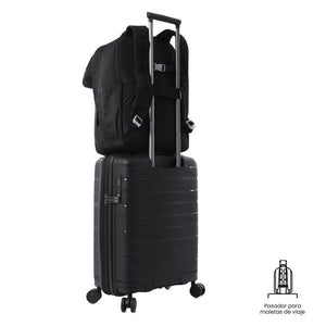 El Mochila Elan Travel es ideal como artículo personal gracias a su diseño práctico y funcional. Incluye un bolsillo porta PC de 16" para mayor seguridad, correas internas de compresión que mantienen tus pertenencias organizadas, y un pasador para ajustarlo a asas telescópicas. Fabricado en materiales de calidad, combina resistencia y ligereza para tus viajes. ¡Hazlo tuyo y lleva todo lo que necesitas con facilidad!
