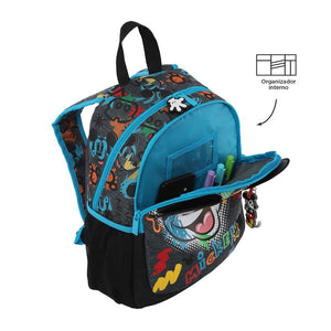 nuestra mochila cuenta con un amplio compartimiento principal con cierre en doble cremallera, brindándoles espacio suficiente para llevar todos sus libros y útiles de forma organizada y segura. Las correas acolchadas ajustables para los hombros ofrecen una opción cómoda para llevarlo. Además, la manija superior en reata permite llevarlo fácilmente en la mano. Los bolsillos laterales porta botellas y el bolsillo frontal con cremallera proporcionan espacio adicional para llevar sus objetos personales. Y como un toque especial, Esta mochila incluye un llavero con tu diseño favorito. No te quedes sin el tuyo