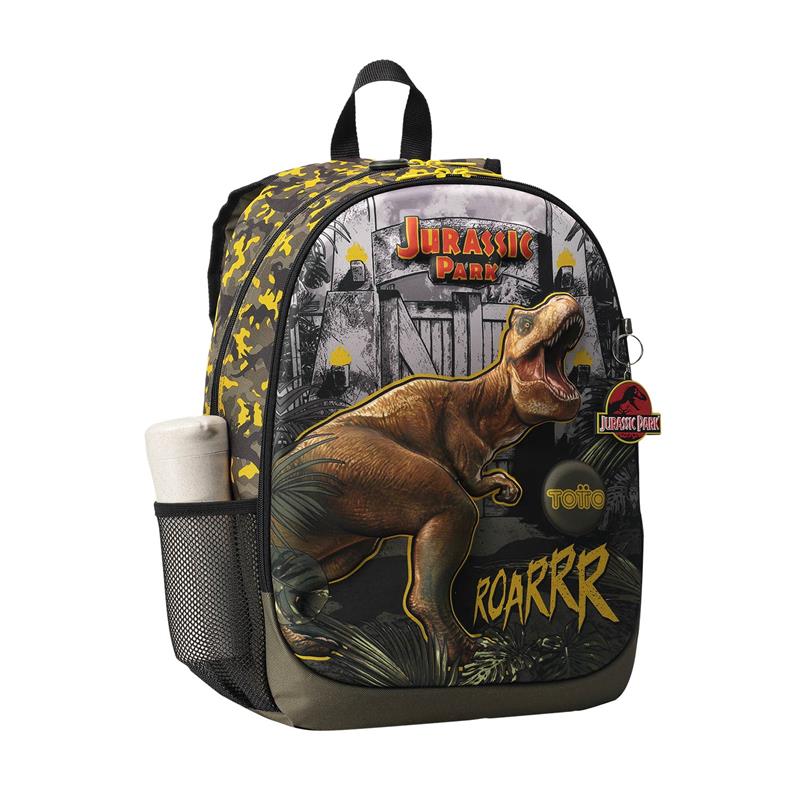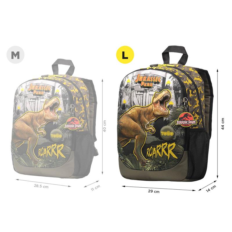 ¡Con la mochila Grande Escolar Jurassic Park 30 años L las clases son más divertidas! Es práctica, resistente y seguro, perfecta para guardar tus libros, cuadernos y útiles preferidos. Está elaborada en poliéster, cuenta con dos compartimentos de gran capacidad, un bolsillo porta botellas para que lleves siempre tus bebidas favoritas, un bolsillo organizador interno para lápices, un llavero microinyectado y correas acolchadas en forma de S que te brindan mayor comodidad. La Mochila Jurassic Park 30 años L tiene un diseño lleno de color que te encantará.
