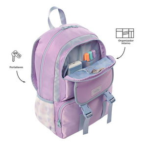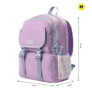 Optimiza cada día escolar con la mochila para niña Cluw mediana! Diseñado en poliéster twill, incluye un compartimiento principal con cierre de doble cremallera, bolsillos frontales e laterales portabotellas para mantener todo organizado. Las correas acolchadas te brindan comodidad, mientras que la manija superior facilita el manejo. Destaca con el llavero en goma en forma de estrella que le da un toque único. ¡Hazlo parte de tu día a día!