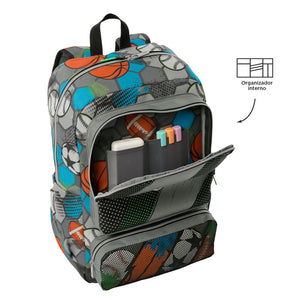 Sus correas acolchadas ajustables y la manija superior en reata ofrecen comodidad. ¡Incluye un llavero de balones deportivos en goma! Fácil De Limpiar