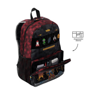 ¡Prepárate para un nivel épico con la colección Digibot! Inspirada en los videojuegos clásicos de naves estilo 8 bits, esta línea llena de energía y nostalgia es ideal para niños de hasta 8 años. Con colores vibrantes como rojo, amarillo, azul y negro. Esta mochila grande, confeccionada en poliéster resistente, y presenta divertidos parches en el frente. Su compartimiento principal cuenta con un cierre en doble cremallera, ideal para almacenar libros, cuadernos y otros artículos escolares. Las correas acolchadas ajustables garantizan comodidad durante todo el día, mientras que el asa superior en reata facilita su transporte. Incluye bolsillos laterales para llevar botellas y un bolsillo frontal con cierre en cremallera que cuenta con un práctico organizador. Además, trae un llavero microinyectado para darle un toque único. ¡Sube de nivel con Digibot!