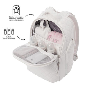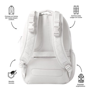 Convierte la rutina con tu bebé en una experiencia cómoda y práctica con la mochila Babybao 2.0. Esta mochila grande de poliamida es ultra liviana y ofrece una organización excepcional. Incluye un bolsillo porta biberones, cambiador de pañales, compartimento para elementos húmedos, y un multiusos extraíble. Con detalles como bolsillos para chupetes y alimentos, así como un pasador para sistema de ruedas y correas para colgar en el coche, esta mochila redefine la funcionalidad. Las correas ergonómicas con Air Mesh aseguran comodidad durante todo el día.