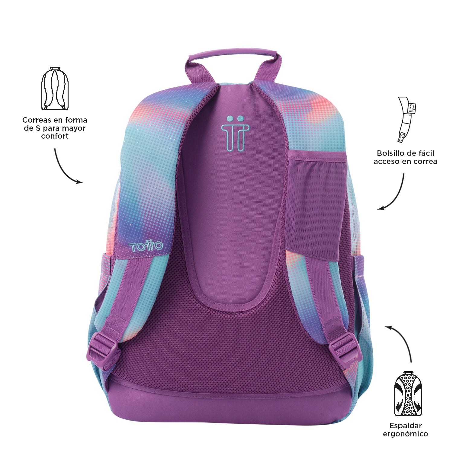 ¡No te quedes sin el tuyo! Esta mochila grande con acabado glitter brillante es ideal para llevar tu portátil de 14". Fabricado con material reciclado de 10 botellas, ofrece 20 litros de capacidad, organizador con portallave, bolsillos frontales de acceso rápido y compartimento para botella. Sus correas ergonómicas con Air Mesh garantizan comodidad. ¡Añádelo a tu colección hoy mismo!