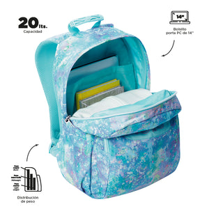 ¡Consigue tu mochila para el colegio ahora! Este salveque es ideal para llevar tu portátil de 14" con total seguridad. Fabricado con lona RPET, producto de 10 botellas recicladas, tiene una capacidad de 20 litros y ofrece bolsillos frontales de acceso rápido, organizador con portallaves, compartimento para botella y correas ergonómicas con Air Mesh, al igual que su espaldar, para brindarte mayor comodidad. ¡Perfecto para tu día a día!