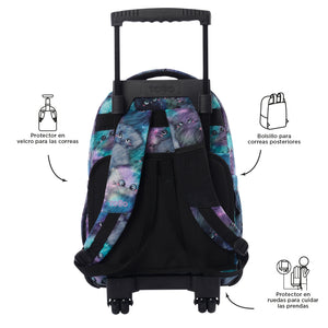 ¡Lleva todo lo que necesitas al colegio con el Mochila con ruedas Bomper Renglon! Diseñado para niñas, incluye porta PC de 15.4" y está fabricado con lona RPET reciclada de aproximadamente 13 botellas plásticas. Equipado con ruedas de goma de alta resistencia, bomper de protección contra impactos y manija telescópica, también tiene un bolsillo de fácil acceso en la correa y un protector en las ruedas para cuidar las prendas. ¡Hazlo tuyo ahora!