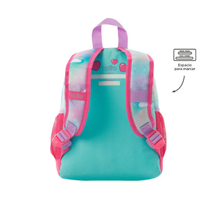 ¡Haz que cada día sea especial con la mochila Sweety Heart! Confeccionada en poliéster, presenta un hermoso estampado con glitter. Cuenta con un compartimiento principal con doble cremallera, correas acolchadas ajustables, manija superior y bolsillos laterales porta botellas. Además, su bolsillo frontal con cierre sirve para guardar objetos pequeños. Cuenta con un llavero interactivo en forma de corazón.