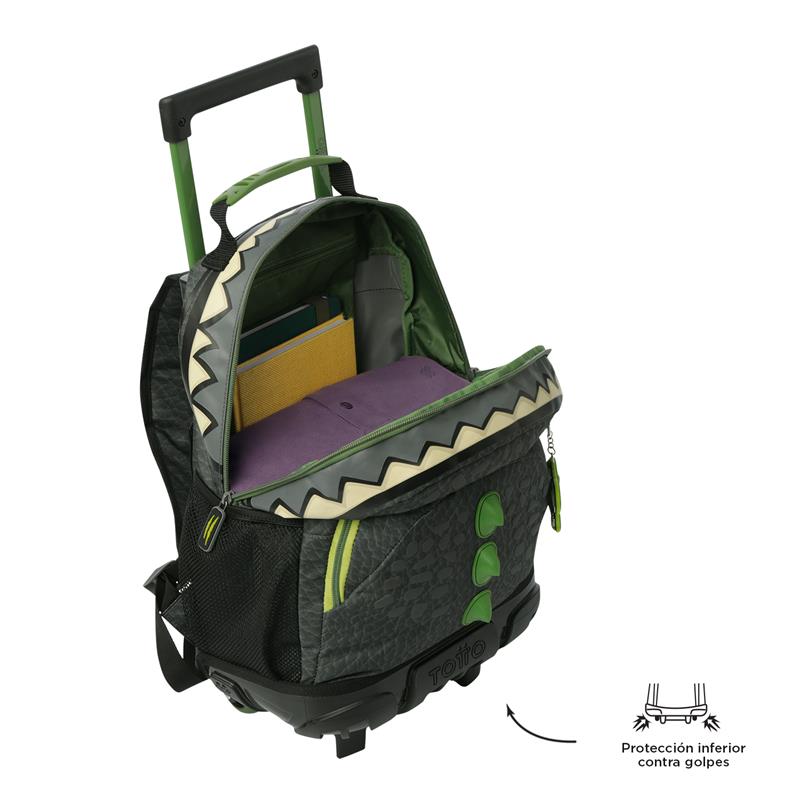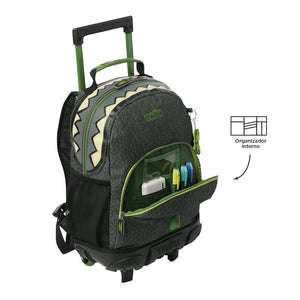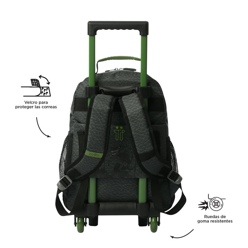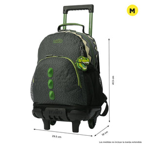 ¡Explora el mundo jurásico con Dinoland! Una colección innovadora para niños de hasta 9 años, diseñada para desatar su imaginación. Con textura que imita la piel de un dinosaurio, un bolsillo frontal con la cresta en relieve y una boca feroz en el compartimiento principal, ¡estas mochilas son pura aventura! En tonos gris y verde con detalles vibrantes. Esta mochila de ruedas mediana, confeccionada en poliéster, cuenta con un compartimiento principal con cierre en doble cremallera, ofreciendo un fácil acceso y seguridad. Sus correas acolchadas ajustables para los hombros y el asa superior en reata aseguran comodidad en el transporte. Además, tiene bolsillos laterales porta botellas y un bolsillo frontal con cierre en cremallera que incluye organizador para mantener todo en orden. Para añadir un toque único, incluye un llavero microinyectado. ¡Lleva la prehistoria a clase con Dinoland!
